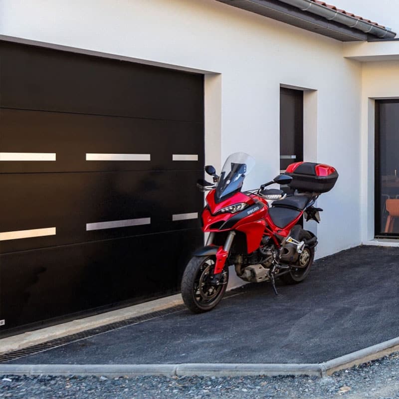 Porte Sectionnelle : Constituée de panneaux articulés, elle s’ouvre verticalement et se loge sous le plafond, optimisant l’espace intérieur et extérieur.